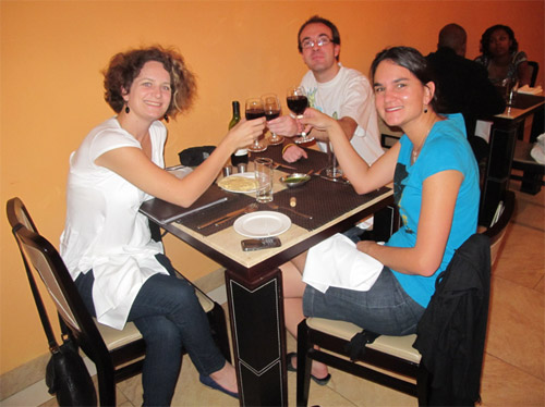 Celebrating with a glass of red wine after a successful discussion with delegates, the Octoplus team soaks in the Ethiopian air.